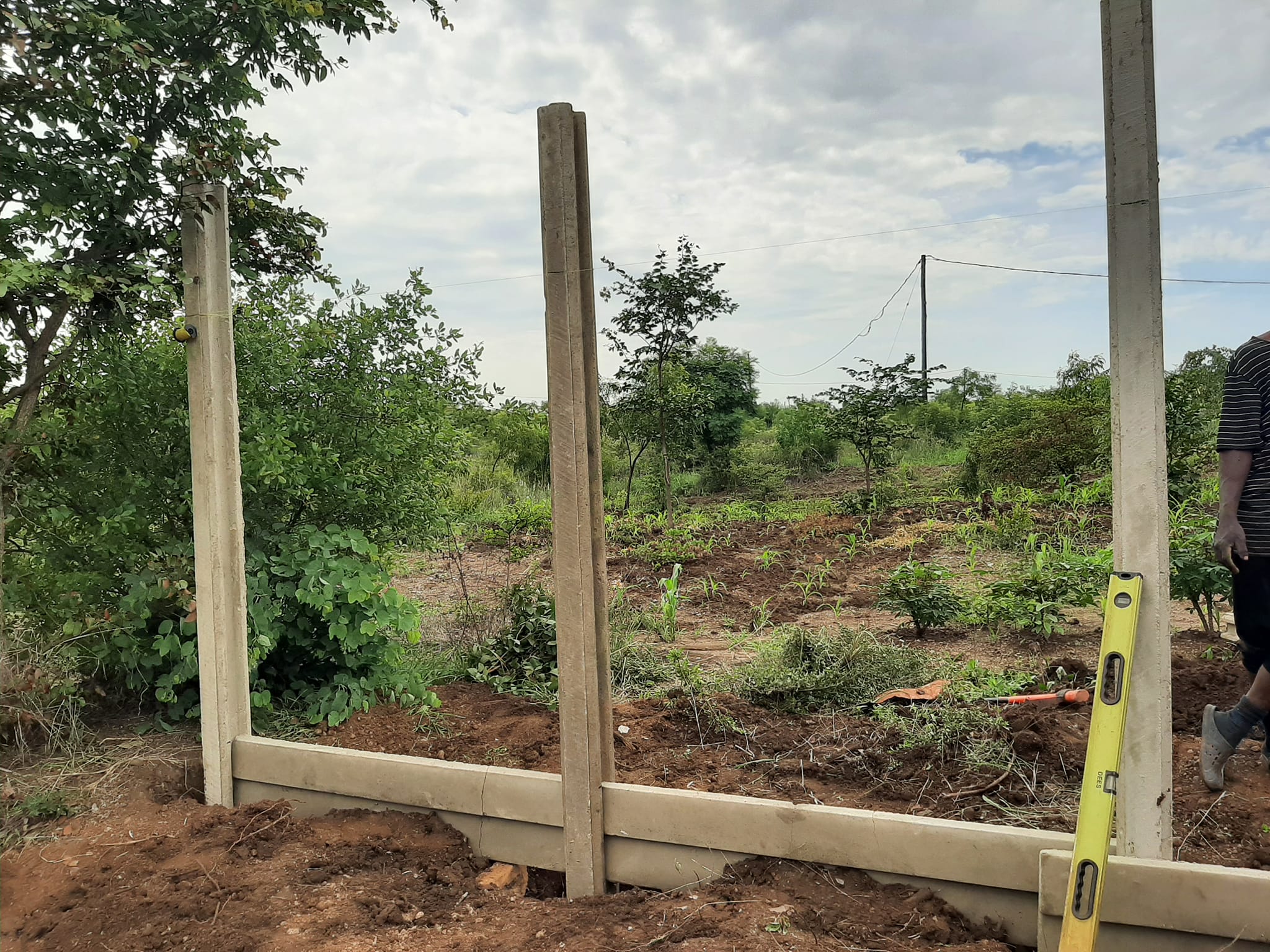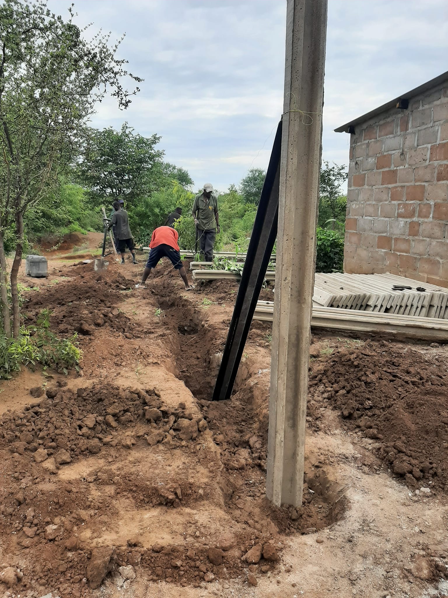 Het heeft even geduurd maar op dit moment is men in Zambia, van het bijeengefietste geld, druk bezig met het plaatsen van een muur/ hek. De foto’s zijn inmiddels van 2 weken geleden.